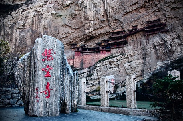 恒山懸空寺,懸掛在恒山金龍峽西側(cè)翠屏峰的半崖峭壁間,是國內(nèi)僅存佛、道、儒三教合一的寺廟,其建筑特色可以概括為“奇、懸、巧”三個(gè)字。令人嘆為觀止。