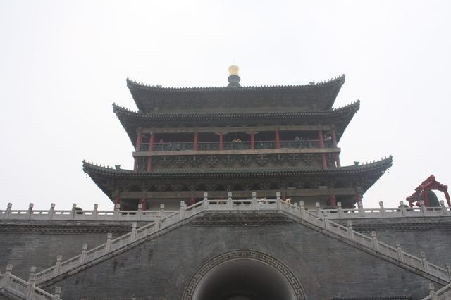 西安鐘樓,西安鐘樓是我國古代留下來的眾多鐘樓中形制很大、保存很完整的一座。在檐上覆蓋有深綠色琉璃瓦,樓內(nèi)貼金彩繪,畫棟雕梁,頂部有鎏金寶頂,金碧輝煌。