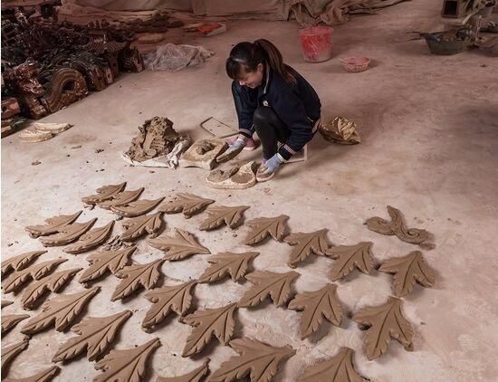 手工制作琉璃構(gòu)件的泥坯。雖然慢,但是只能用手工制作。