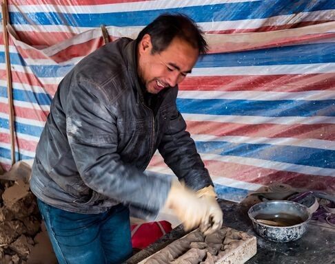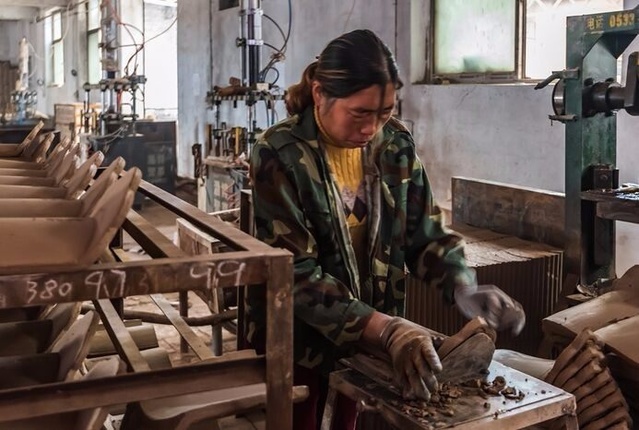 其次就是制作。一般制作山西琉璃瓦和琉璃構(gòu)件需要模具。用模具的好處是大小、花型、式樣是一樣的,而且效率高。圖為工人正在制作坯子。