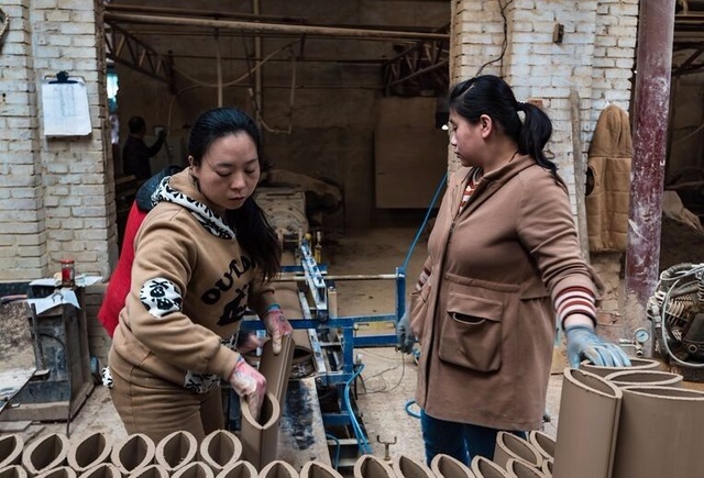 工人在運(yùn)轉(zhuǎn)制作好的坯子。