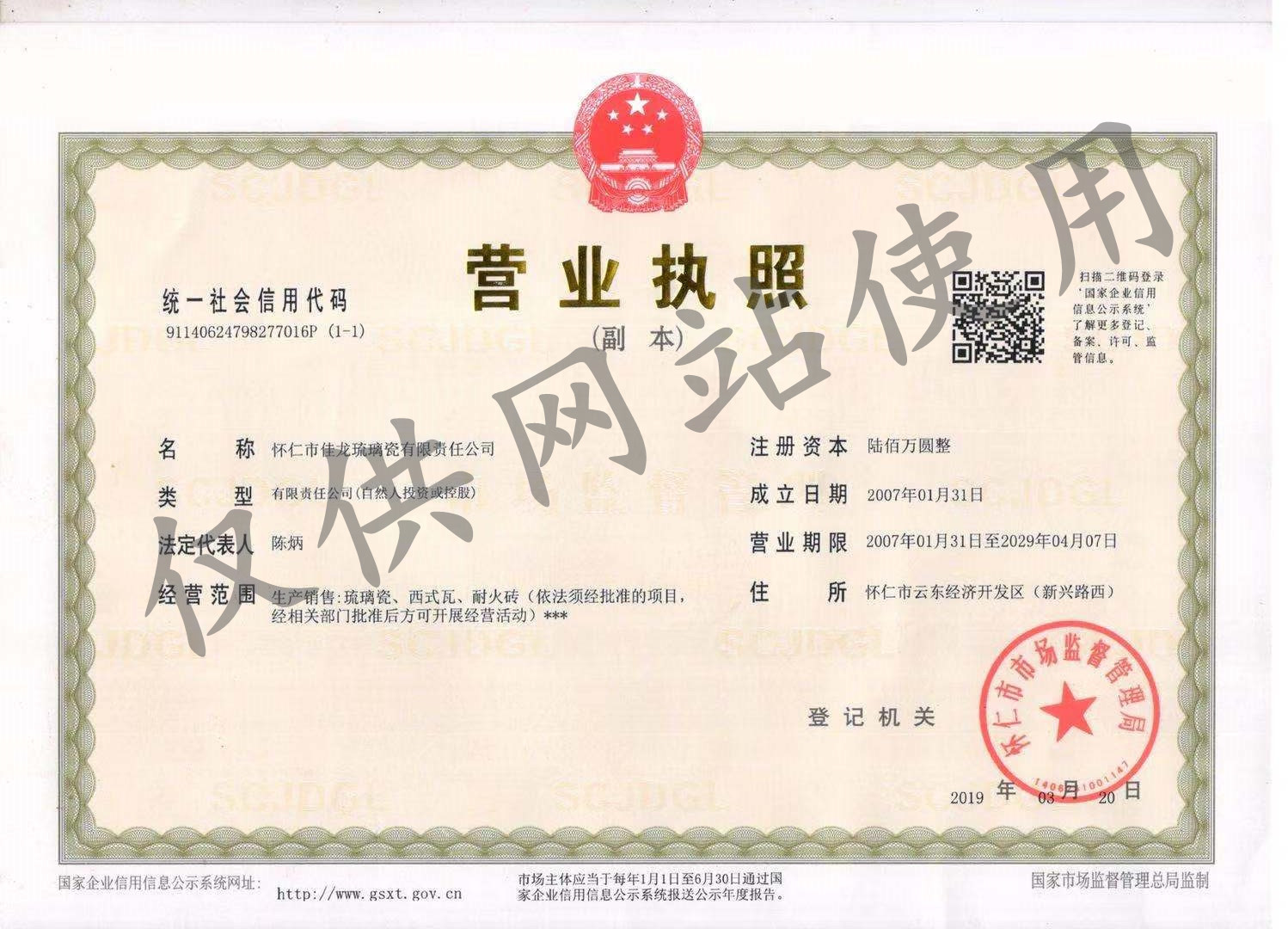 當(dāng)前位置:山西琉璃瓦,山西古建琉璃瓦,仿古琉璃瓦,山西琉璃瓦廠-懷仁市佳龍琉璃瓷有限責(zé)任公司>企業(yè)證書